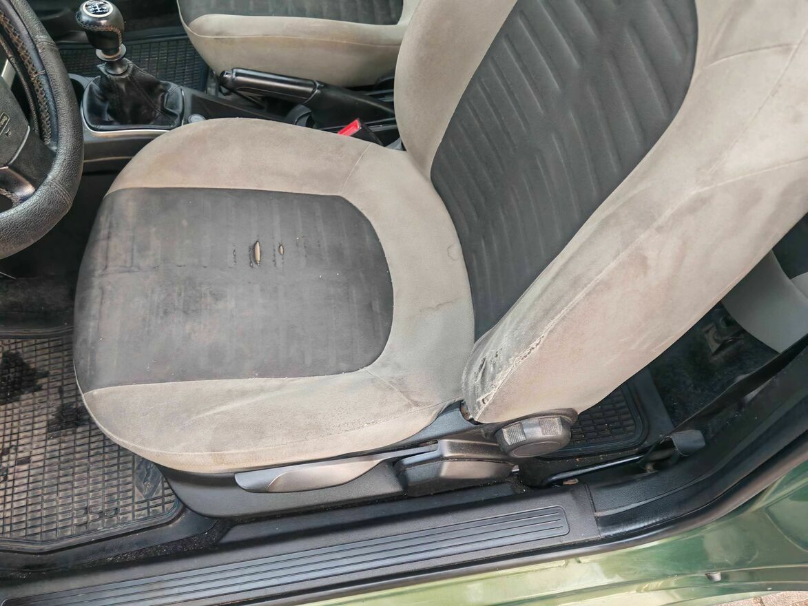 Ma widoczne ślady użytkowania, rysy, otarcia oraz zużyte wnętrze. Największy minus to korozja widoczna na jednym z progów. Drugi próg jest w lepszym stanie. Auto nie posiada klimatyzacji.